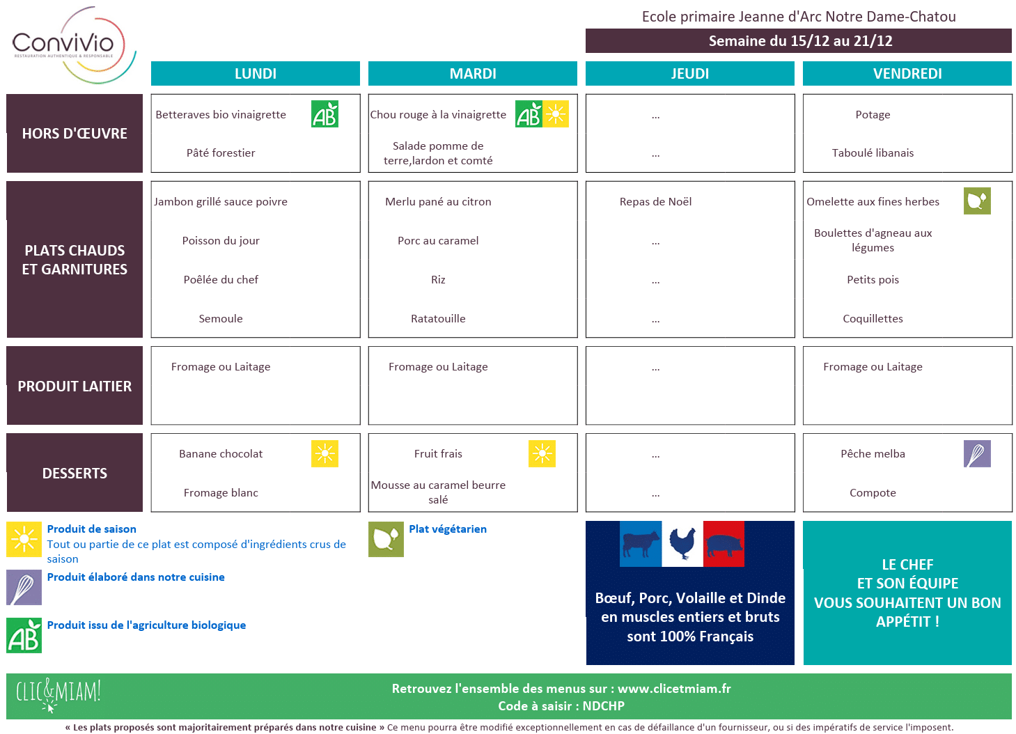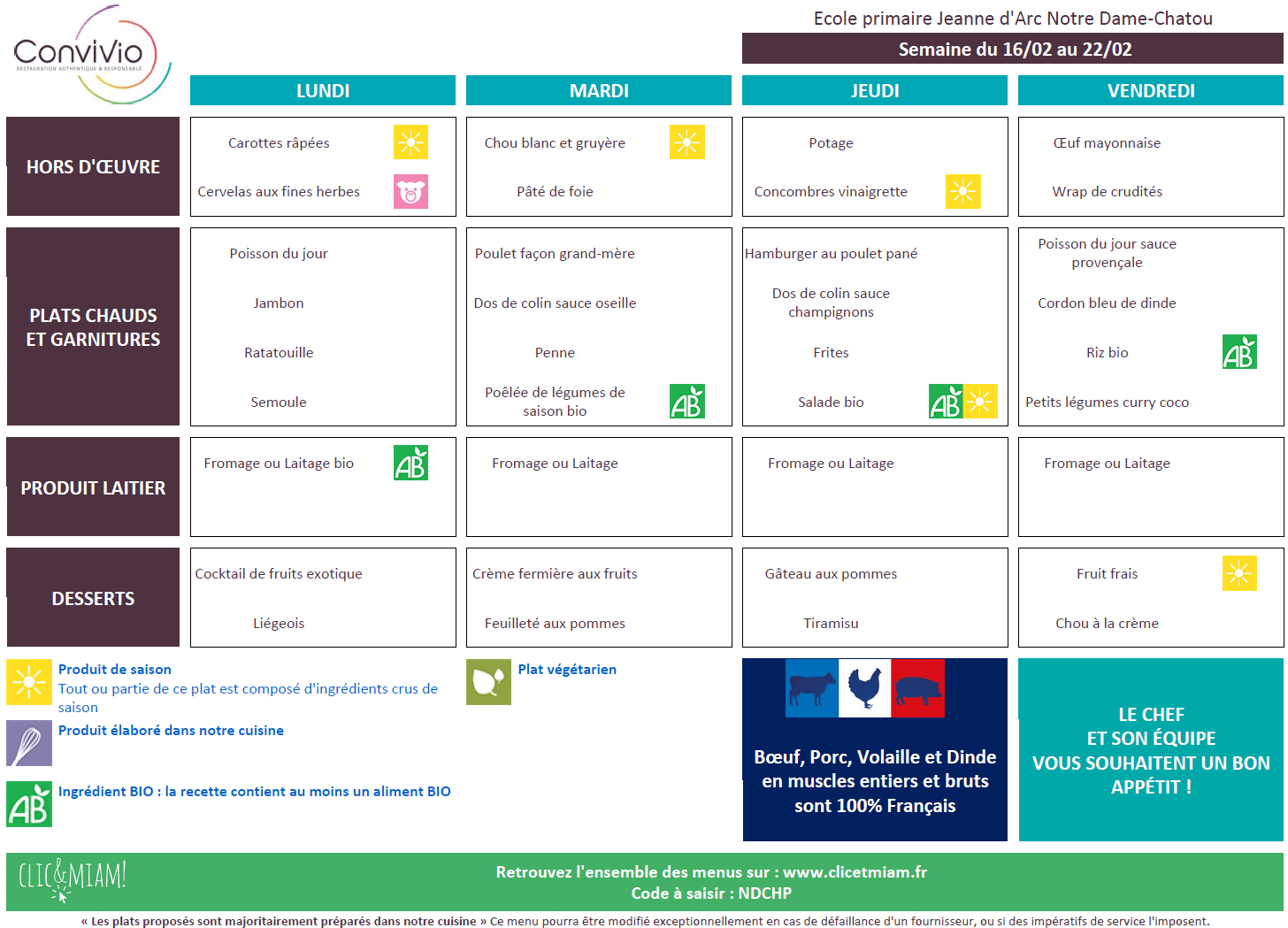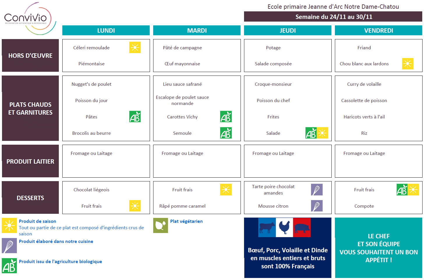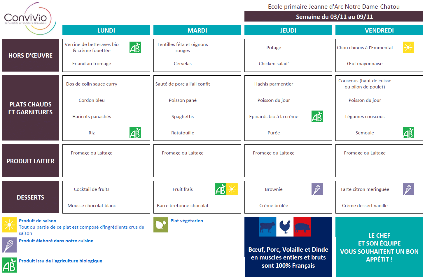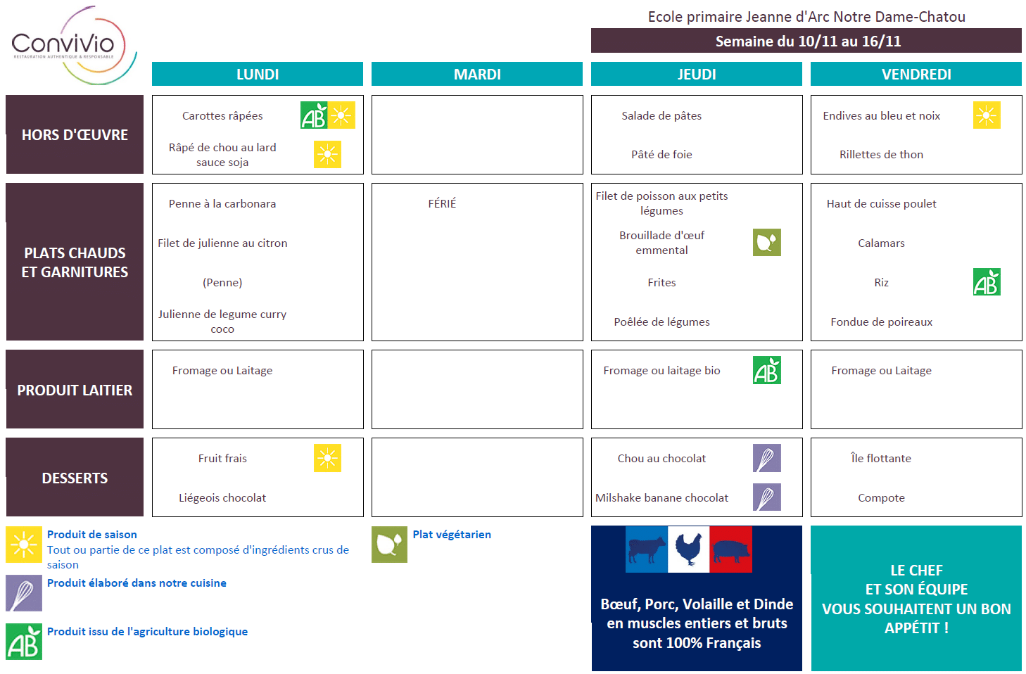 Chaque semaine, vous trouverez ci-dessous les menus proposés aux élèves. Ils sont affichés à l’école et régulièrement mis à jour sur cette page.